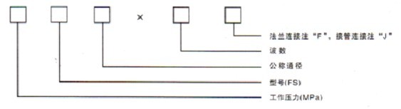 舉例:0.6TNY500TF 表示:公稱通徑為Φ500,工作壓力為0.6MPa,(6kg/cm2)波數(shù)為4個(gè),帶導(dǎo)流筒,碳鋼法蘭連接的內(nèi)壓式波紋補(bǔ)償器。